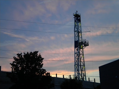 | Against the backdrop of an autumn sunset Patterson - UDI drills Devon's Hencken 9B Unit near Lake Benbrook, in southern Tarrant county. |